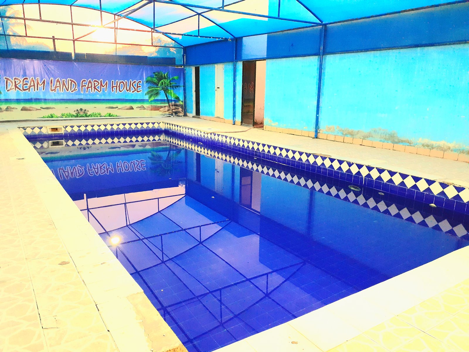 FACILITIES: ✔️Large Pool (Size: 40*18 ft / Depth 3 to 5.7 ft) ✔️3 Rooms with attached bath (2 commode) ✔️Big Lounge ✔️Stylish kitchen ✔️Gas cylinder with stove ✔️Fridge / Icebox with Ice ✔️Stylish BarBQ area with complete lightning ✔️Patti, Dabbu ✔️FOOTBALL ground ✔️Cricket Pitch ✔️stylist Sitting area in garden with complete lightning ✔️Swings for kids in garden ✔️2 Stand by generator ✔️Masjid for prayers also for women ✔️complete ground lighting ✔️Peaceful, pleasant and fully Secured. And much more.. TIMINGS: MORNING : 8AM - 6PM NIGHT: 8PM - 7AM DAY-NIGHT 8PM - 5PM