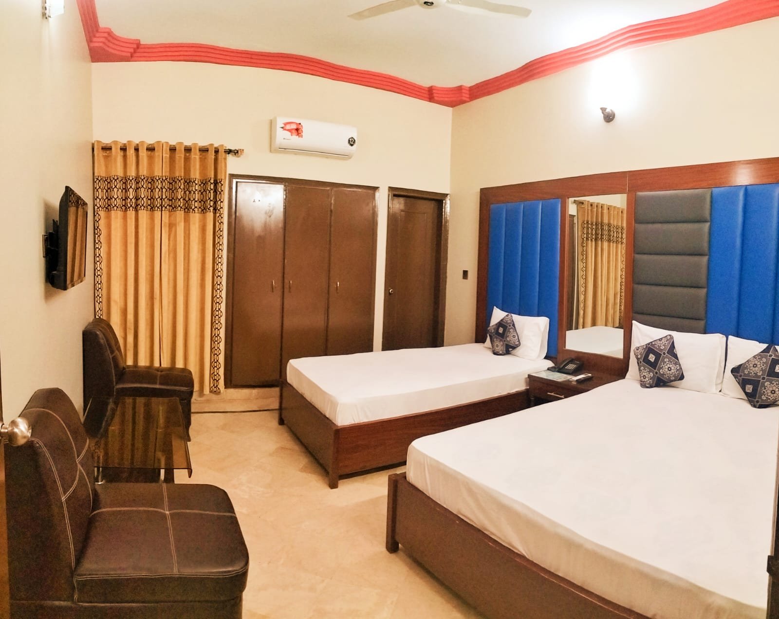 Single room 5500 Double 6500 Triple room 7500 Single 1 person Double 2 person And Triple ma 3/4 person Facility.... Smart led tv Kitchen Hot and cool water 24 hours room service Car parking Rent a car